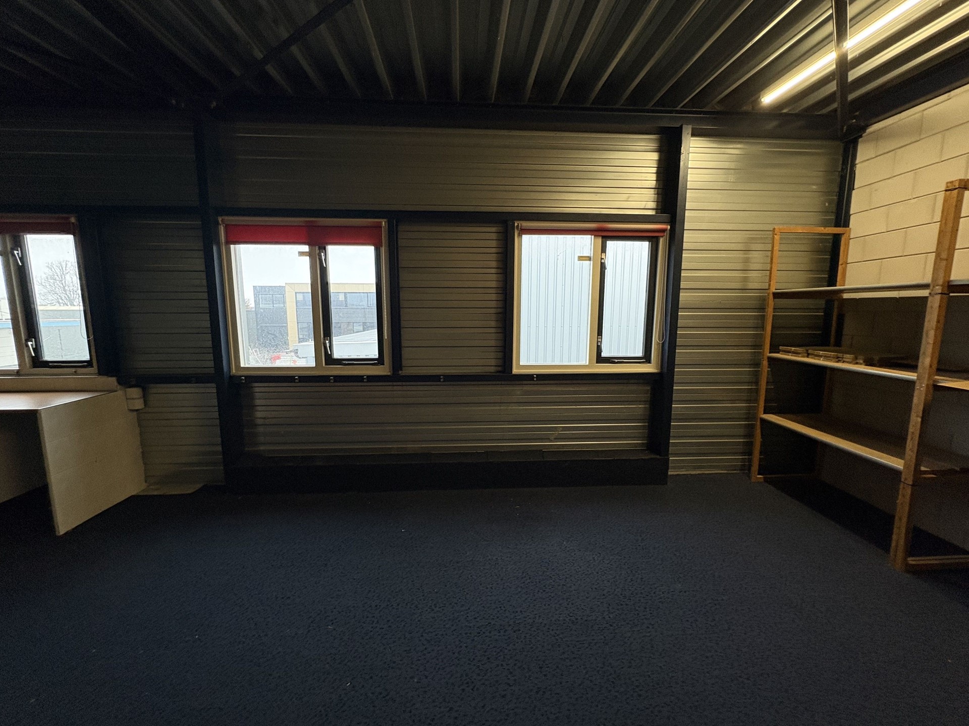 - Dak : Stalen, geïsoleerde dakplaten, bitumen afgewerkt